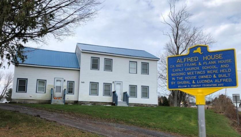 Johnson, in his 1877 book, History of Oswego County, New York: With Illustrations and Biographical Sketches of Some of Its Prominent Men and Pioneers, on August 20, 1810, one of the earliest churches in the region was established and all of the initial seven members were women. This church was named the First Presbyterian Church of Mexico. Similar to the Masons, these women needed a meeting place and they found their solution at the Alfred House. They decided to utilize the barn in the back of the house (“Grip’s”).